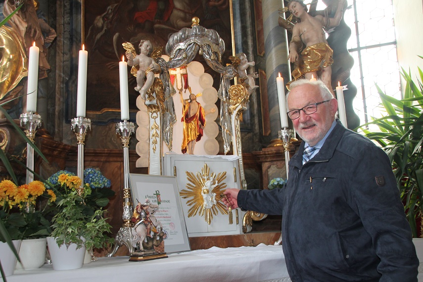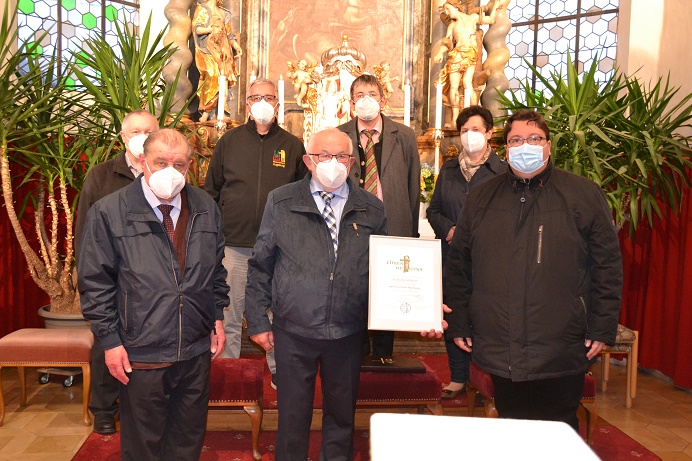 Als Dank wurde Herrn Neubauer zu seinem 50-jährigen Mesnerjubiläum vom Mesnerverband die Medaille in Silber und eine Ehrenurkunde durch